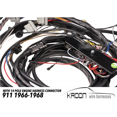 Complete chassis harness for the 911 1968 left hand drive with a later type 14 pole connector in the engine bay.